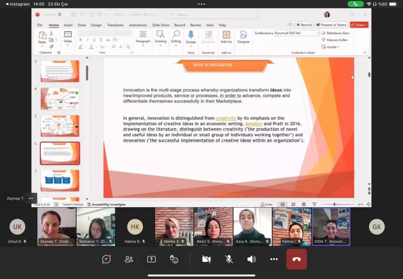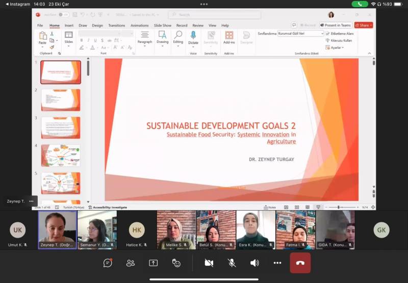 Sakarya Üniversitesi Mühendislik Fakültesi bünyesinde faaliyet gösteren Gıda Mühendisliği Öğrenci Topluluğu Migros Ar-Ge Program Yöneticisi Zeynep Turgay’ın katılımıyla “Gıda Arz Güvenliğinde Sistematik Çözümler” konulu online seminer düzenledi. 3 Ekim 2024 tarihinde düzenlenen etkinliğe Microsoft Team üzerinden Gıda Mühendisliği Topluluğu 32 üye katılım sağladı.