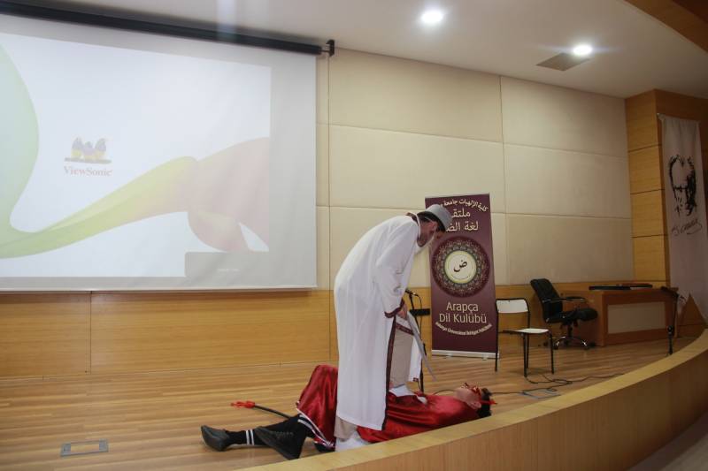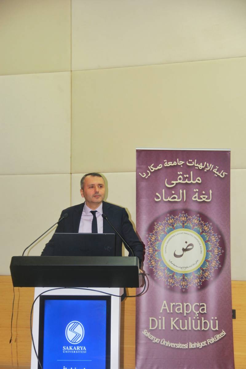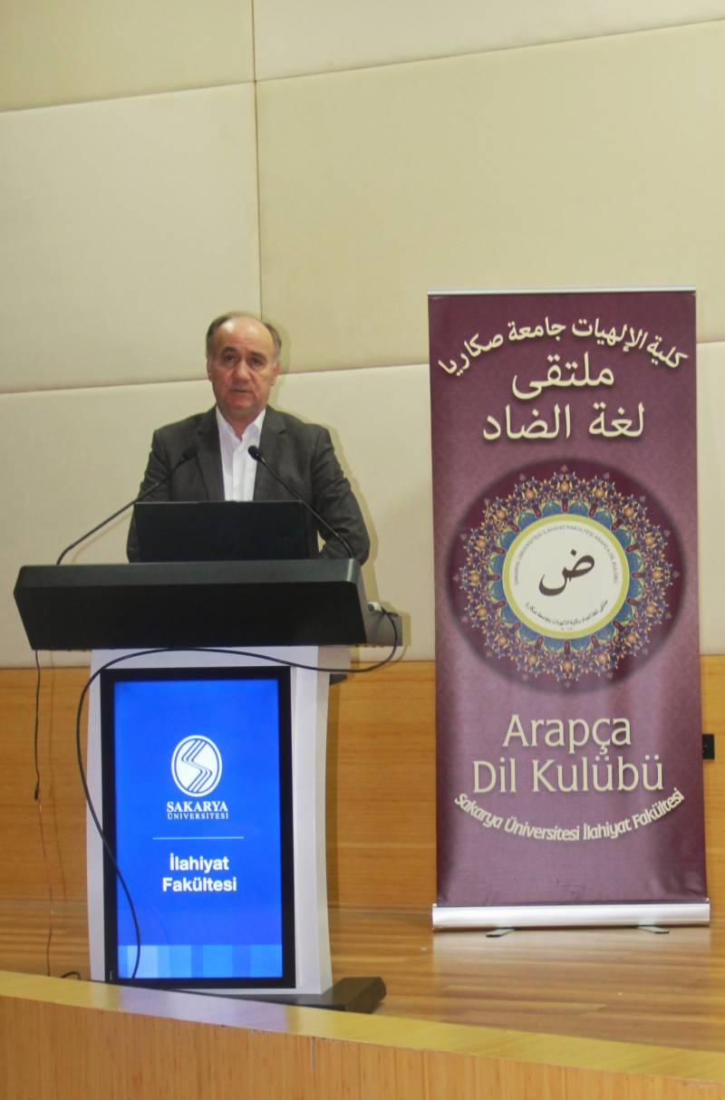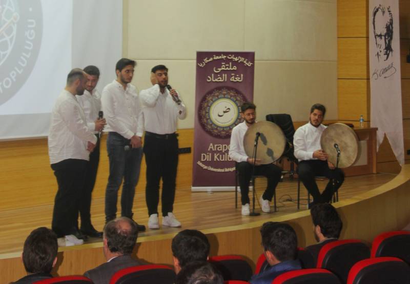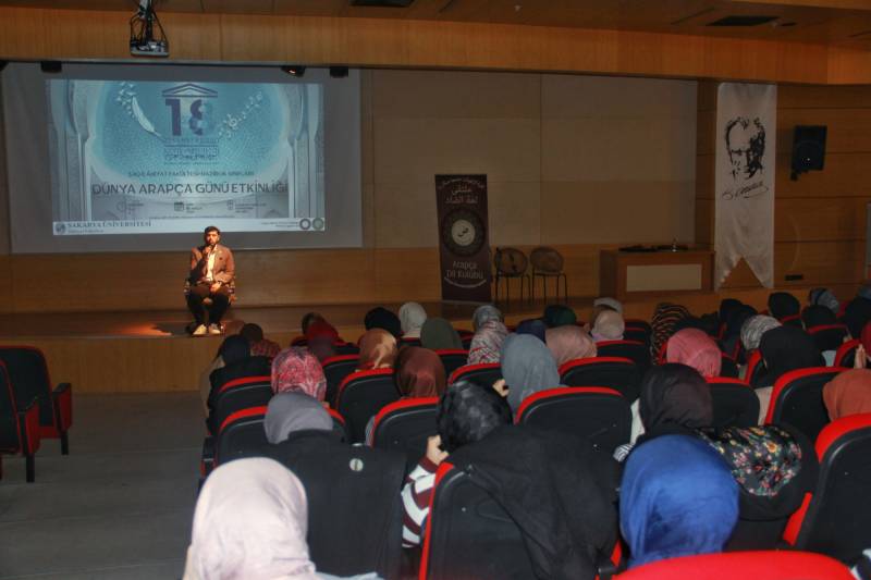 Sakarya Üniversitesi İlahiyat Fakültesi bünyesinde faaliyet gösteren Arapça Eğitimi Topluluğu tarafından 20 Aralık Cuma günü İlahiyat Fakültesi Konferans Salon'unda Dünya Arapça Günü Etkinliği gerçekleştirildi. Açılış konuşmasında söz alan önceki dönem İlahiyat Fakültesi Dekanı Prof. Dr. Ahmet Bostancı Arapça'nın dünya dilleri arasındaki yerinin öneminden bahsederken coğrafyamız açısından da ne kadar değerli olduğunun altını çizdi. Etkinliğe İlahiyat Fakültesi Dekanı Prof. Dr. Hasan Meydan, öğretim üyeleri ve öğrenciler katıldı. Etkinlik kapsamında Arapça şiirler ve kasideler okunarak öğrenciler tarafından mini bir arapça tiyatro gösterimi sergilendi. Etkinlik toplu fotoğraf çekimi ile son buldu.